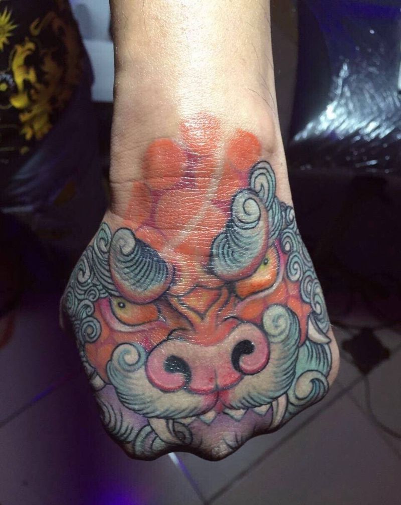 当前位置: 首页 >广西梧州市纹身店-梧州天越刺青纹身图案>手背 唐狮纹身作品纹身图片