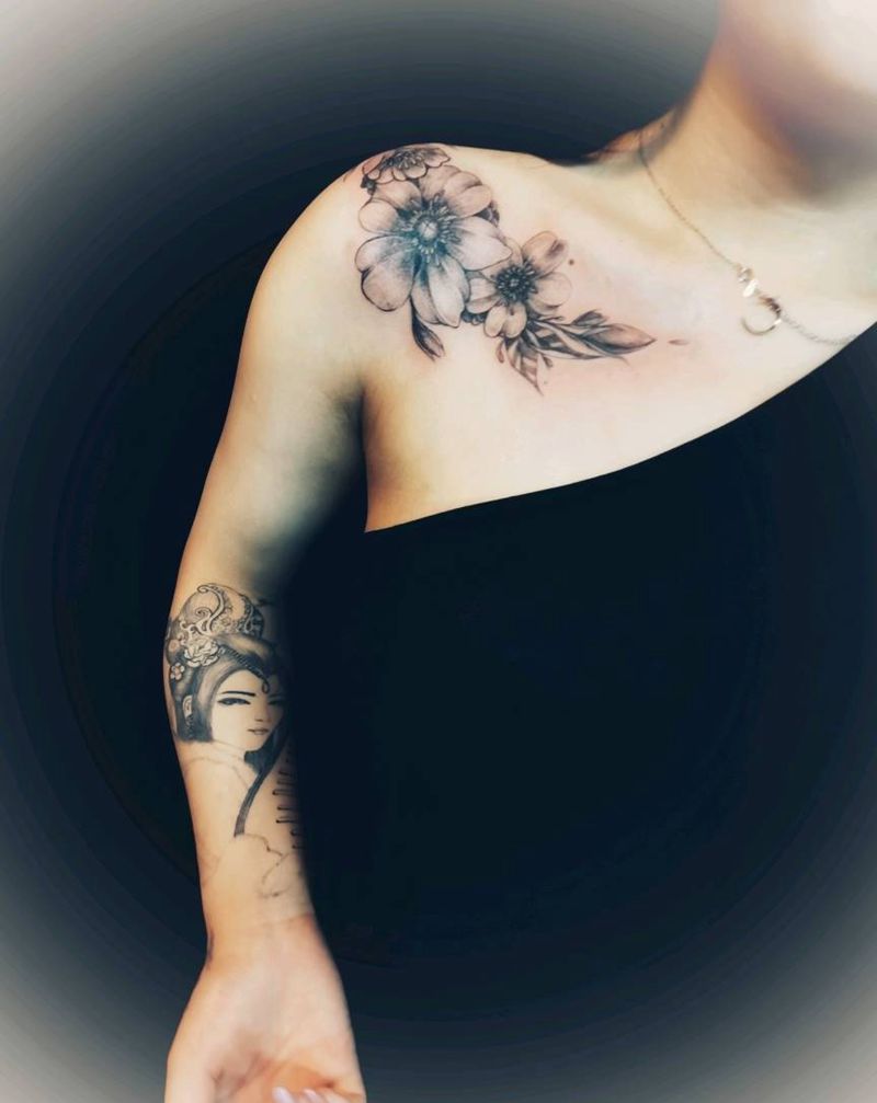 • 女性大花胸纹身_43张霸气漂亮的女性大花胸纹身图案作品