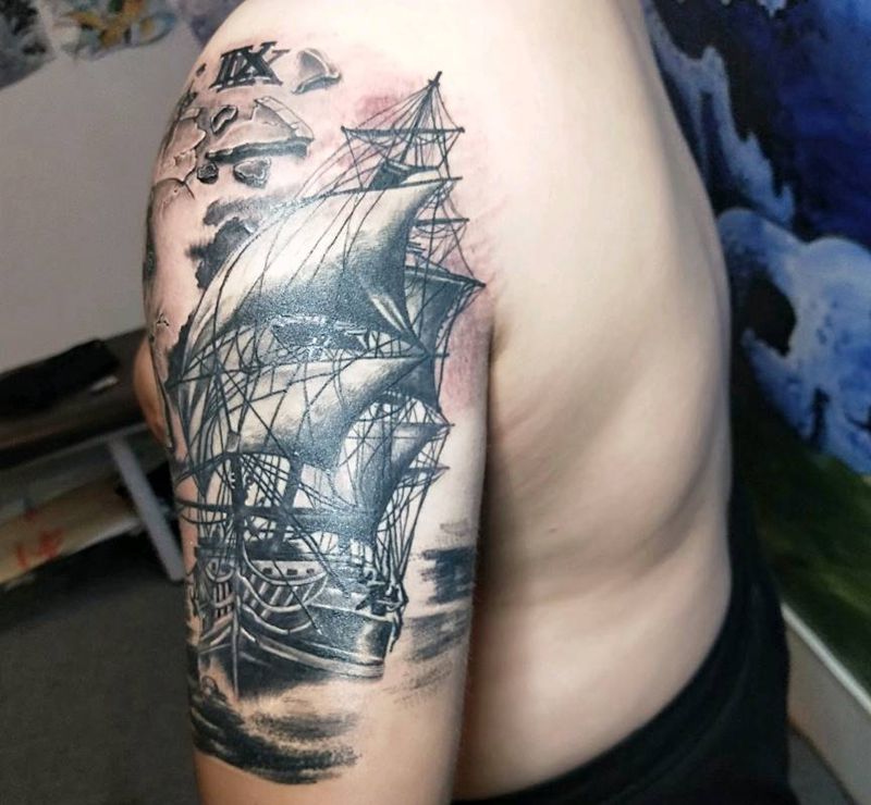 当前位置: 首页 >广西桂林市纹身店-文刺青纹身工作室纹身图案>帆船时钟纹身图片