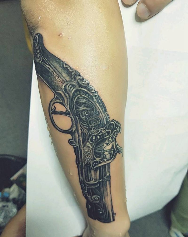 当前位置: 首页 >广西桂林市纹身店-文刺青纹身工作室纹身图案>复古火枪纹身图片_手臂欧美写实纹身图案