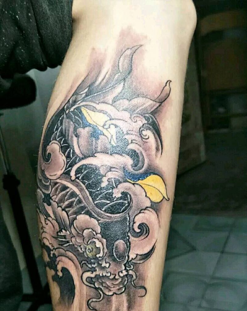 • T网红王老大花腿龙纹身图片_腿部新传统纹身图案