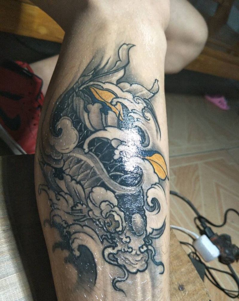 • T网红王老大花腿龙纹身图片_腿部新传统纹身图案