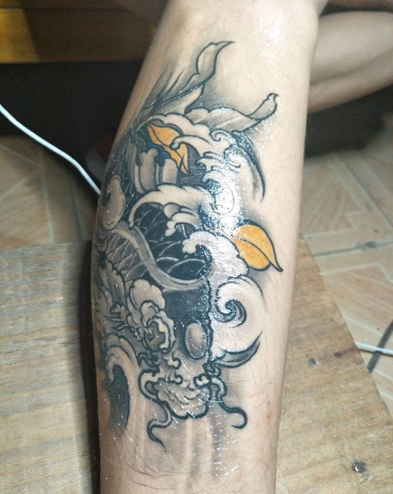 • T网红王老大花腿龙纹身图片_腿部新传统纹身图案