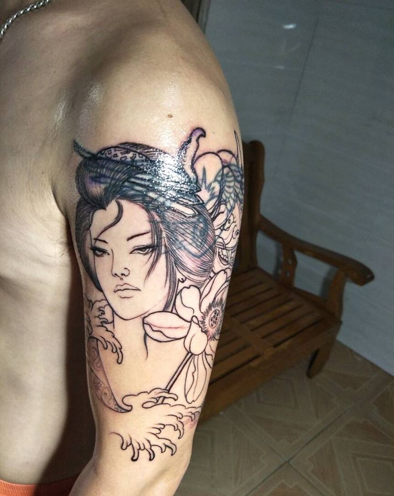 • 女性大花胸纹身_43张霸气漂亮的女性大花胸纹身图案作品