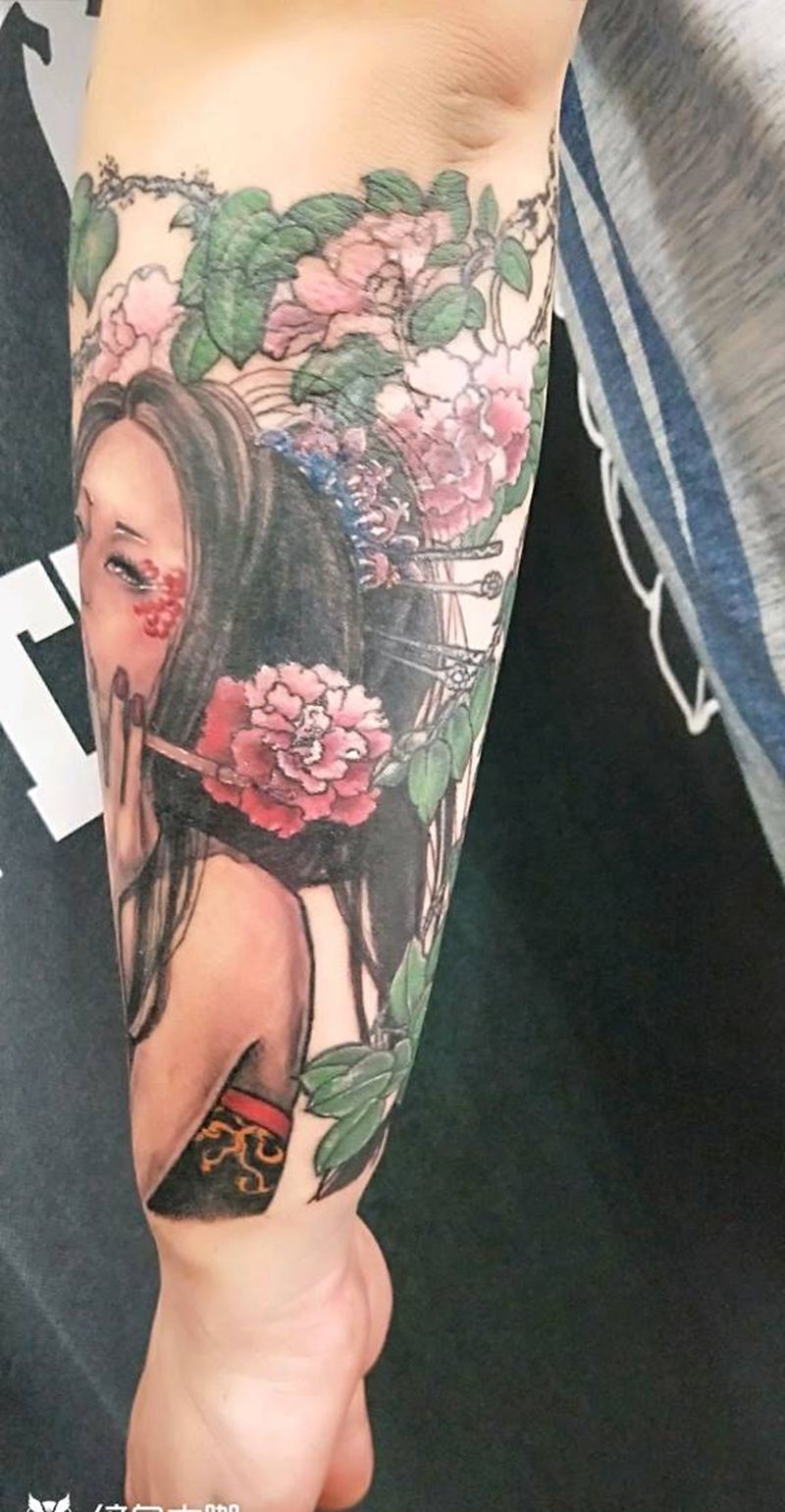 当前位置: 首页 >广西桂林市纹身店-文刺青纹身工作室纹身图案>小臂艺伎纹身图片_新传统纹身图案