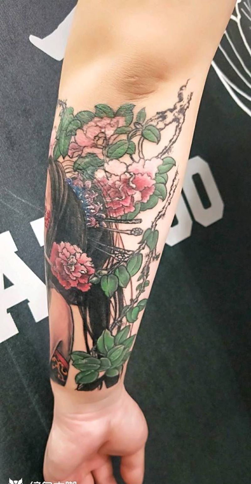 当前位置: 首页 >广西桂林市纹身店-文刺青纹身工作室纹身图案>小臂艺伎纹身图片_新传统纹身图案