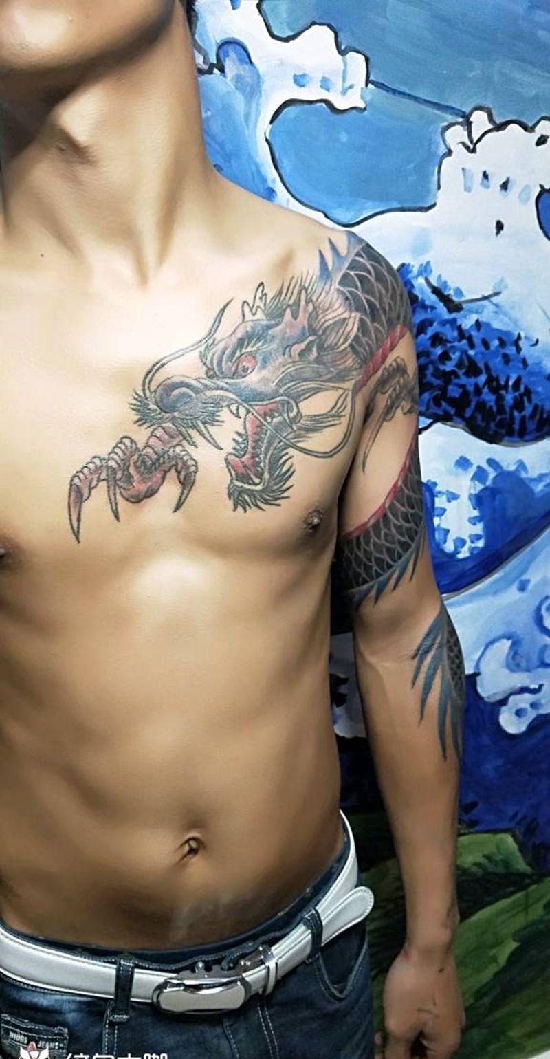 • T网红王老大花腿龙纹身图片_腿部新传统纹身图案
