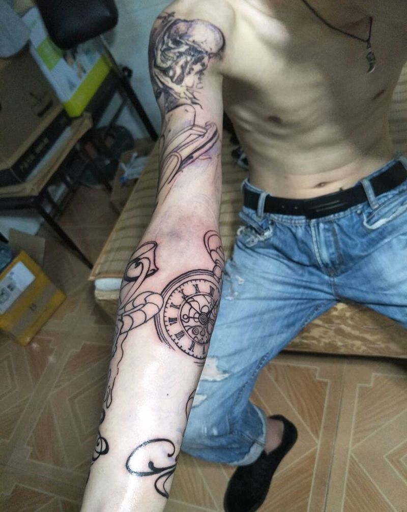 当前位置: 首页 >广西桂林市纹身店-文刺青纹身工作室纹身图案>花臂进行中~纹身图片