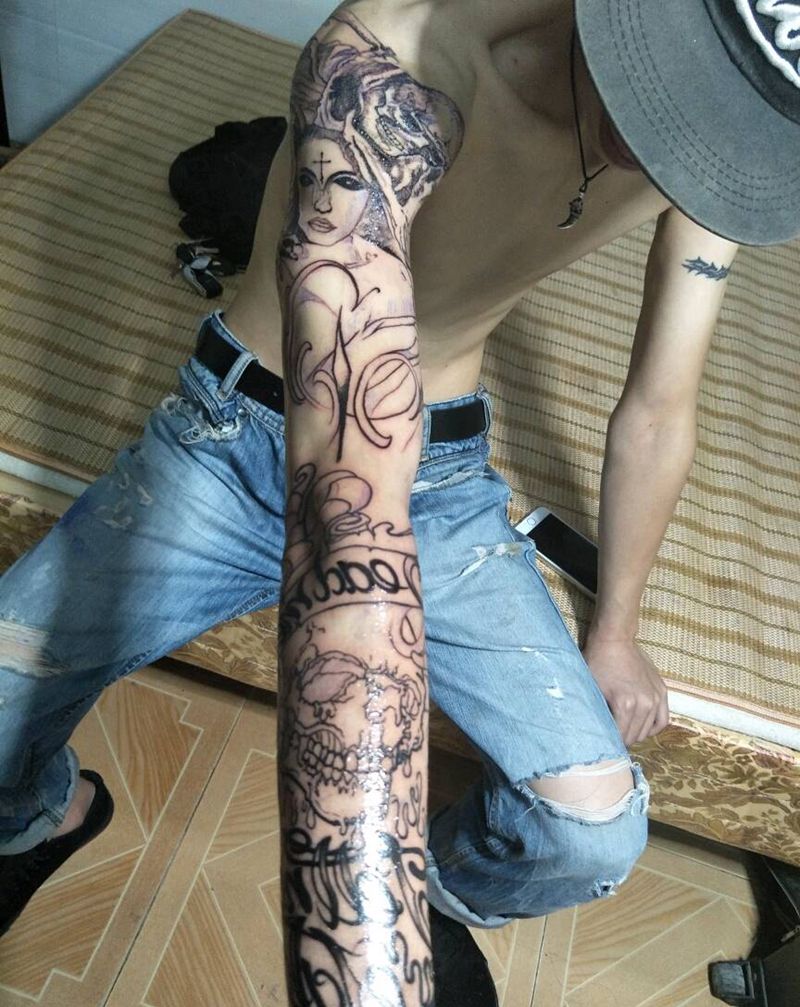 当前位置: 首页 >广西桂林市纹身店-文刺青纹身工作室纹身图案>花臂进行中~纹身图片
