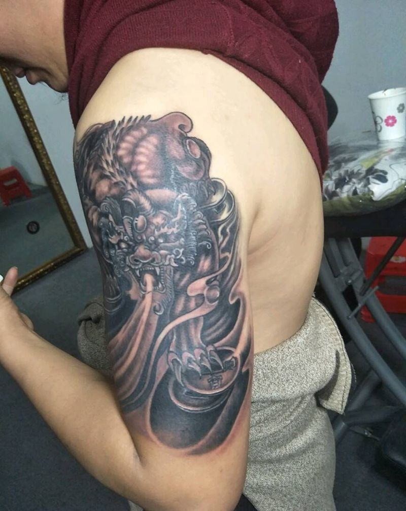 • 纹身吧推荐的披肩图腾半胛纹身图案作品展示