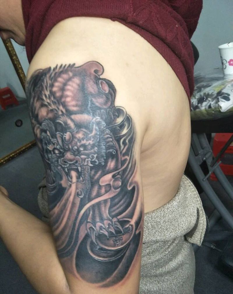 • 纹身吧推荐的披肩图腾半胛纹身图案作品展示