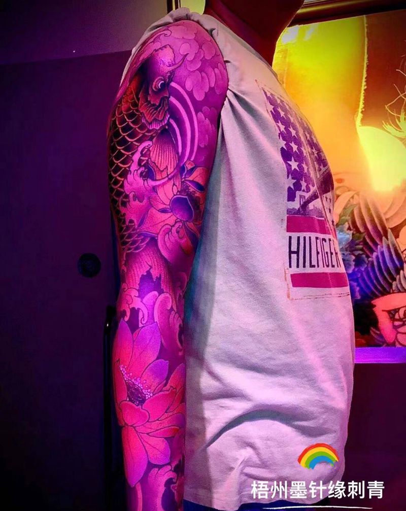 当前位置: 首页 >广西梧州市纹身店-墨针缘刺青工作室纹身图案>招财鲤鱼大花臂纹身图片_手臂手部新传统纹身图案