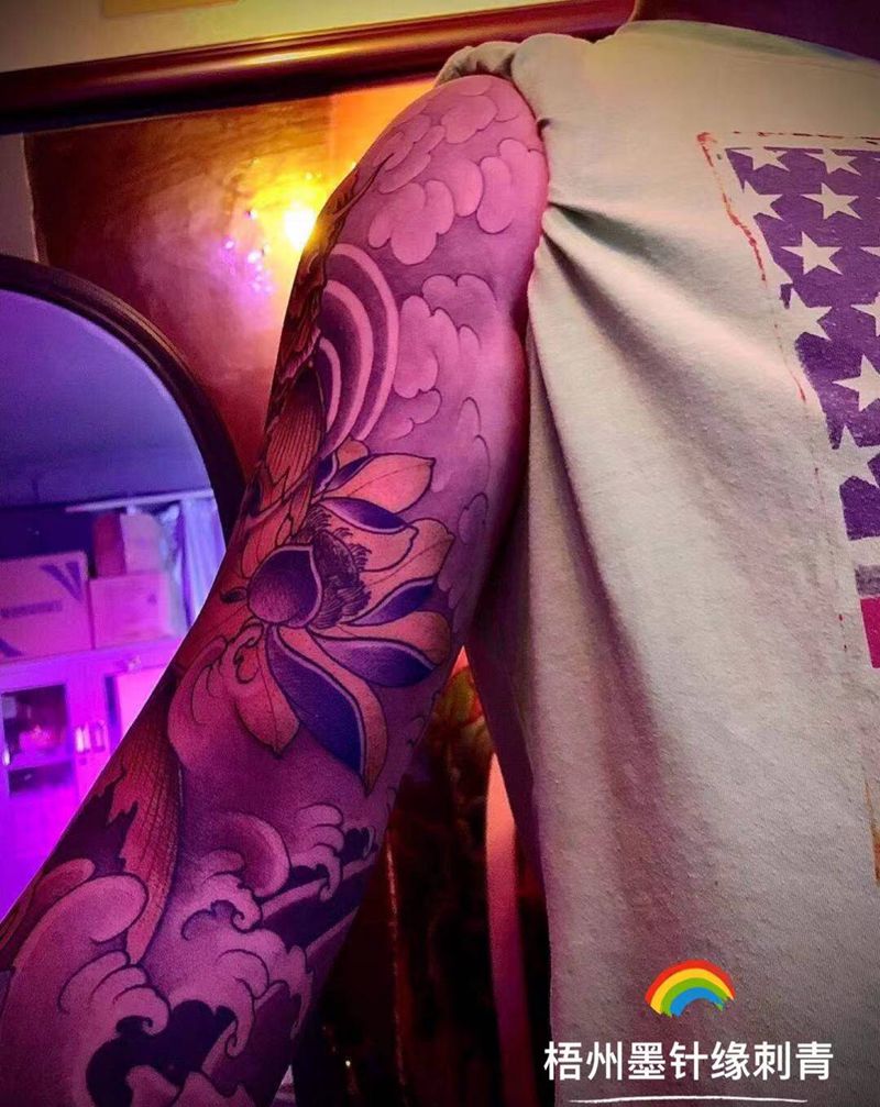 当前位置: 首页 >广西梧州市纹身店-墨针缘刺青工作室纹身图案>招财鲤鱼大花臂纹身图片_手臂手部新传统纹身图案