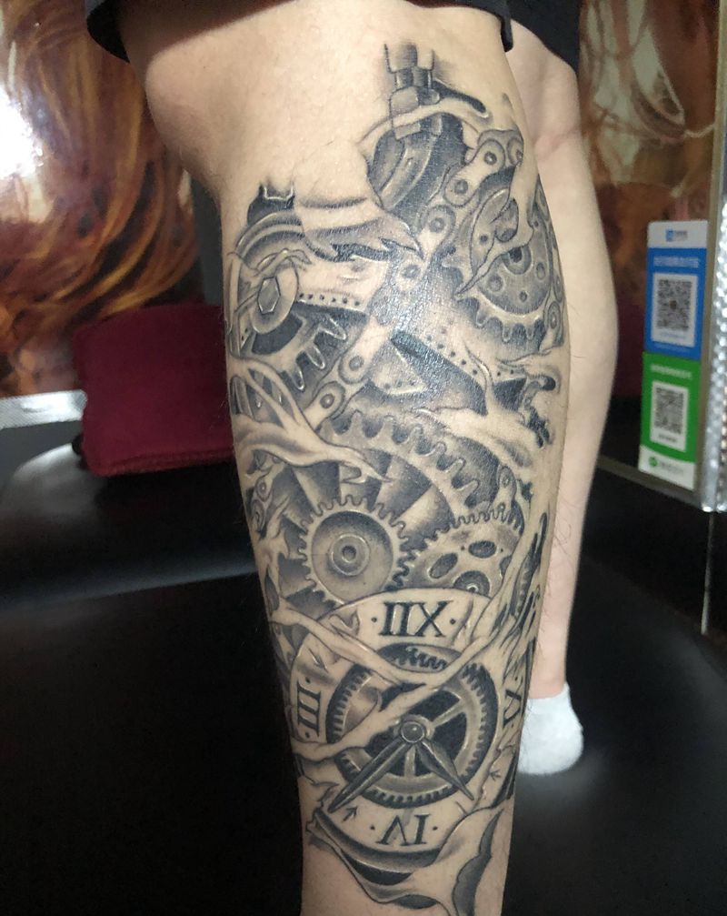 当前位置: 首页 >广西梧州市纹身店-墨针缘刺青工作室纹身图案>机械时钟纹身图片_腿部纹身图案