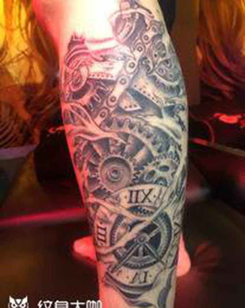 当前位置: 首页 >广西梧州市纹身店-墨针缘刺青工作室纹身图案>机械时钟纹身图片_腿部纹身图案