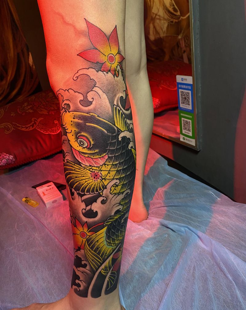 当前位置: 首页 >广西梧州市纹身店-墨针缘刺青工作室纹身图案>招财鲤鱼纹身图片_腿部纹身图案