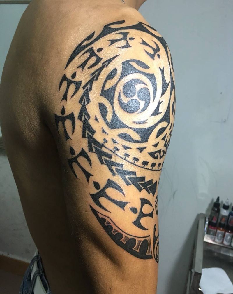 当前位置: 首页 >广西梧州市纹身店-墨针缘刺青工作室纹身图案>大臂图腾纹身图片