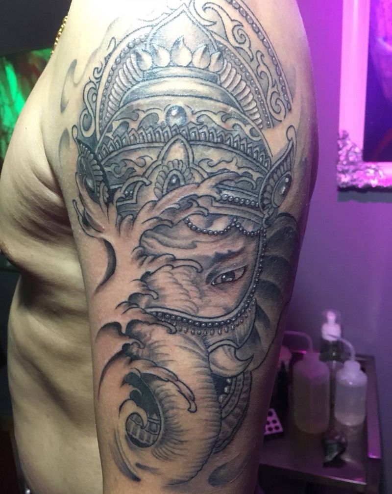 当前位置: 首页 >广西梧州市纹身店-墨针缘刺青工作室纹身图案>象神纹身图片