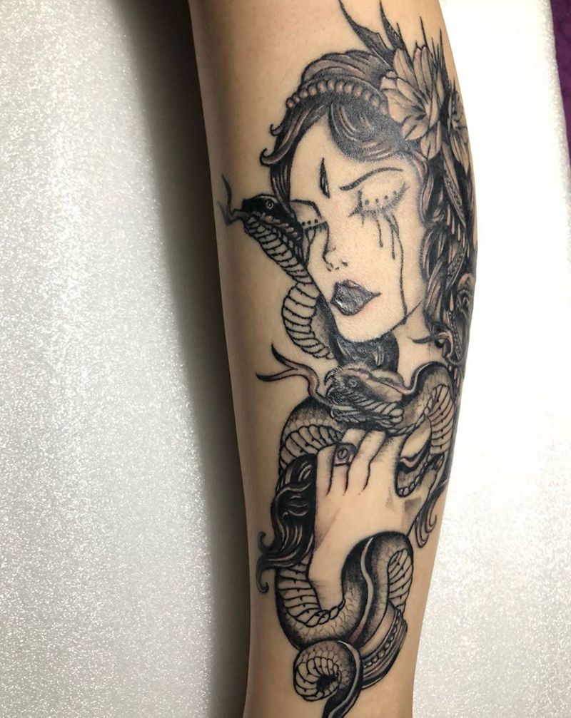 当前位置: 首页 >广西梧州市纹身店-墨针缘刺青工作室纹身图案>蛇女纹身图片
