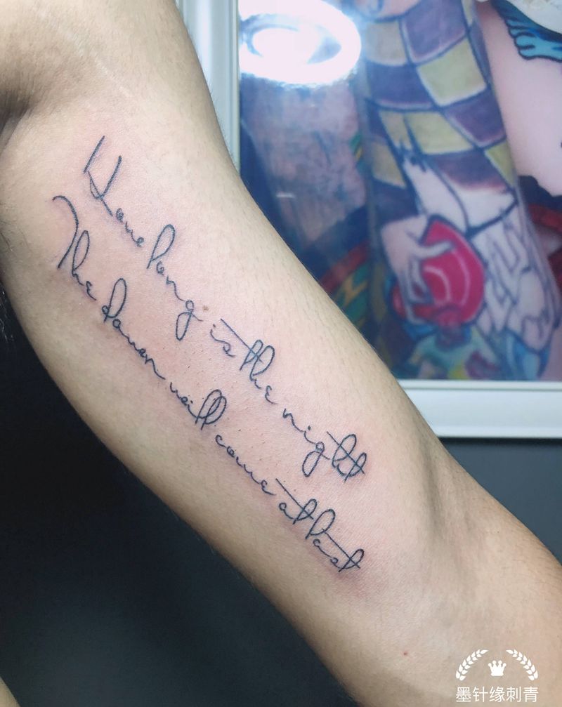当前位置: 首页 >广西梧州市纹身店-墨针缘刺青工作室纹身图案>小英文纹身图片_手臂纹身图案