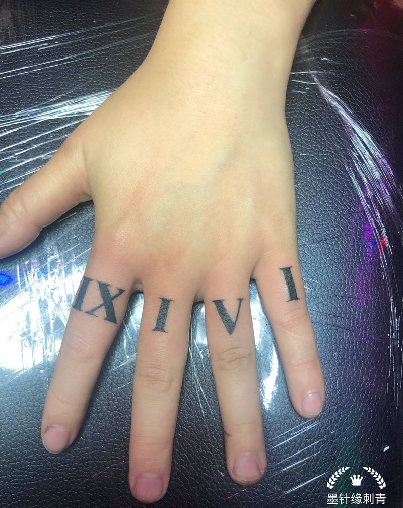当前位置: 首页 >广西梧州市纹身店-墨针缘刺青工作室纹身图案>罗马数字纹身图片_手部纹身图案