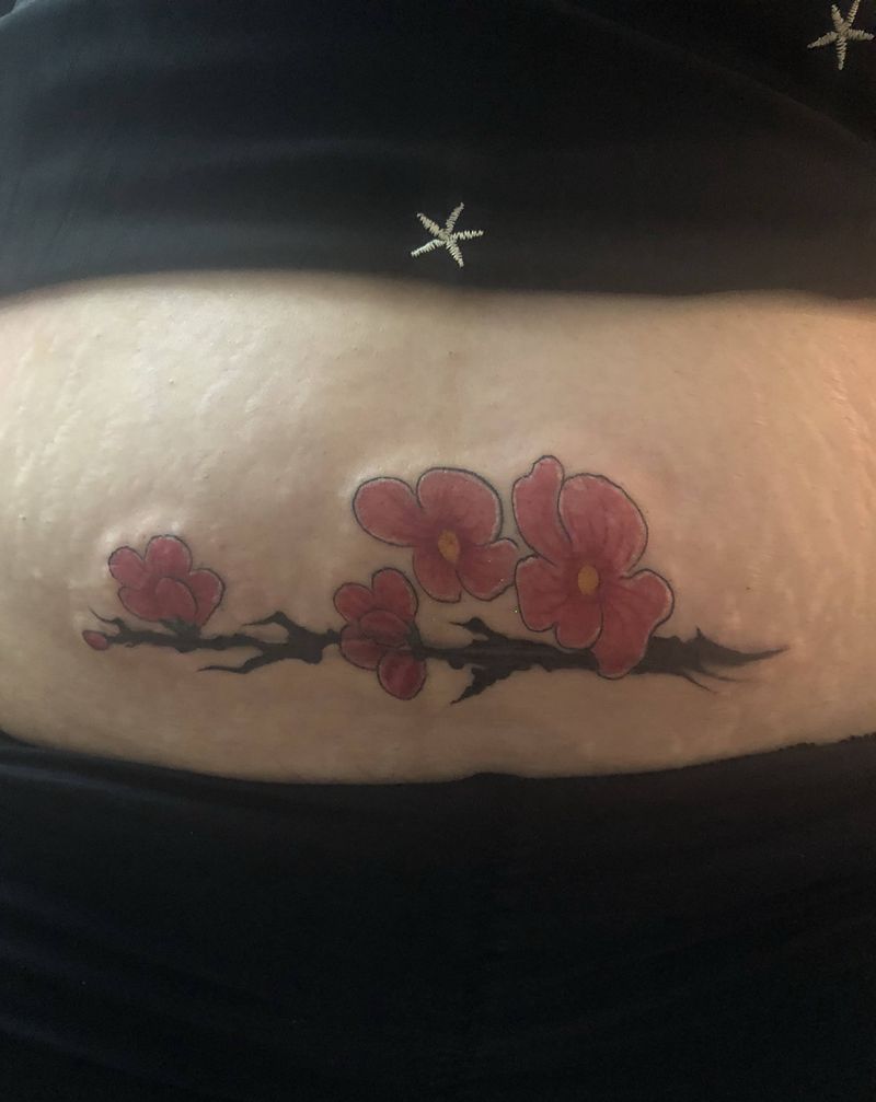 遮盖剖腹产疤痕纹身图片_腹部纹身图案