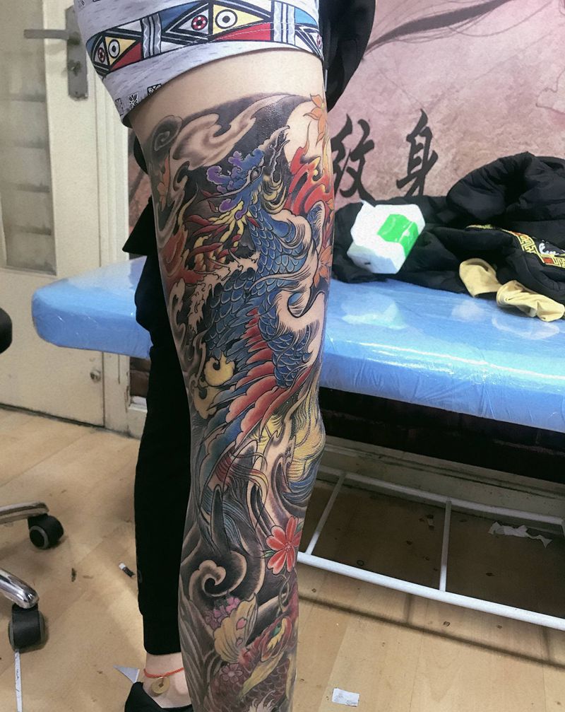 当前位置: 首页 >广西桂林市纹身店-桂林墨客纹身纹身图案>花腿纹身图片_腿部纹身图案