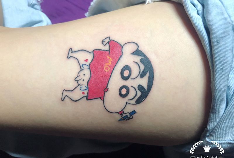 当前位置: 首页 >广西梧州市纹身店-墨针缘刺青工作室纹身图案>腊笔小新纹身图片_腿部纹身图案