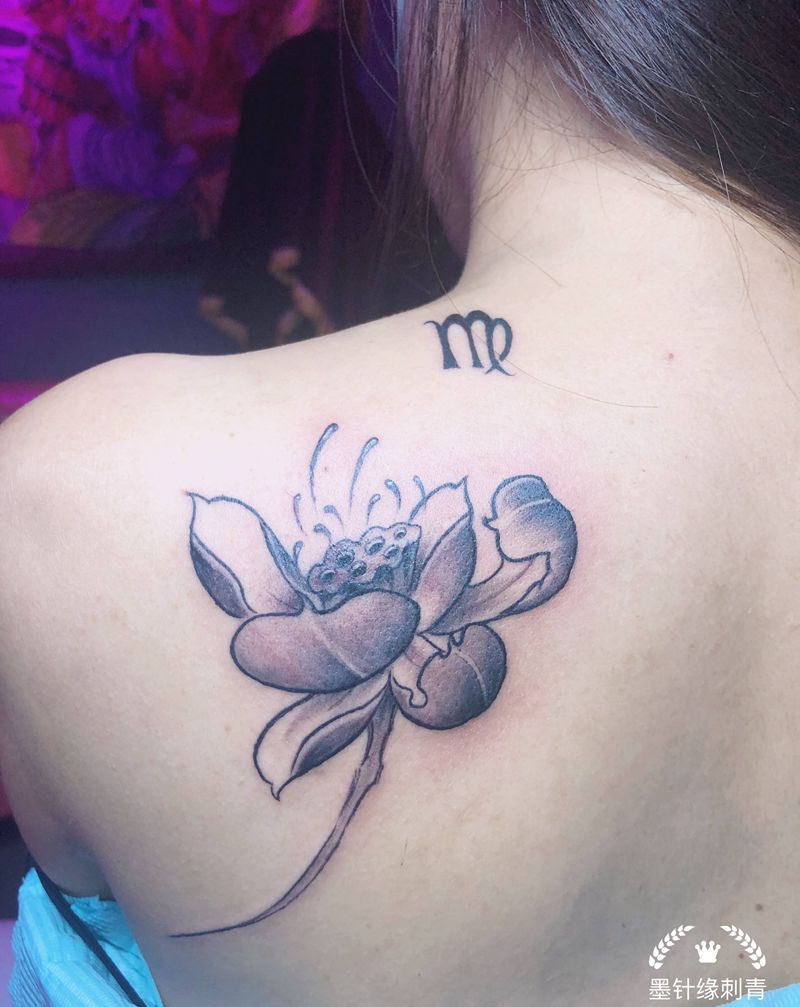 当前位置: 首页 >广西梧州市纹身店-墨针缘刺青工作室纹身图案>荷花纹身图片_背部纹身图案