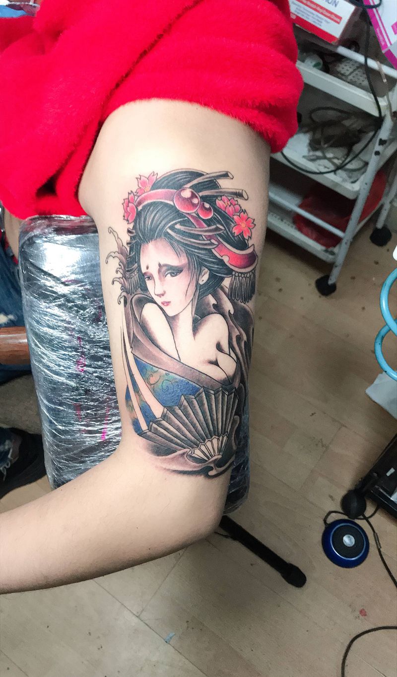 当前位置: 首页 >广西桂林市纹身店-桂林墨客纹身纹身图案>艺妓纹身图片_手臂纹身图案