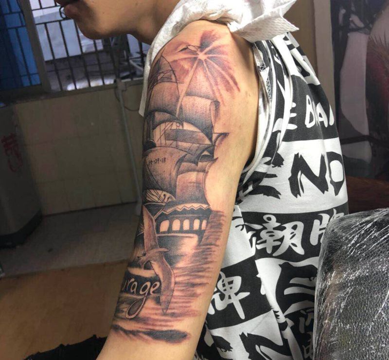 当前位置: 首页 >广西桂林市纹身店-桂林墨客纹身纹身图案>船纹身图片_手臂水墨纹身图案