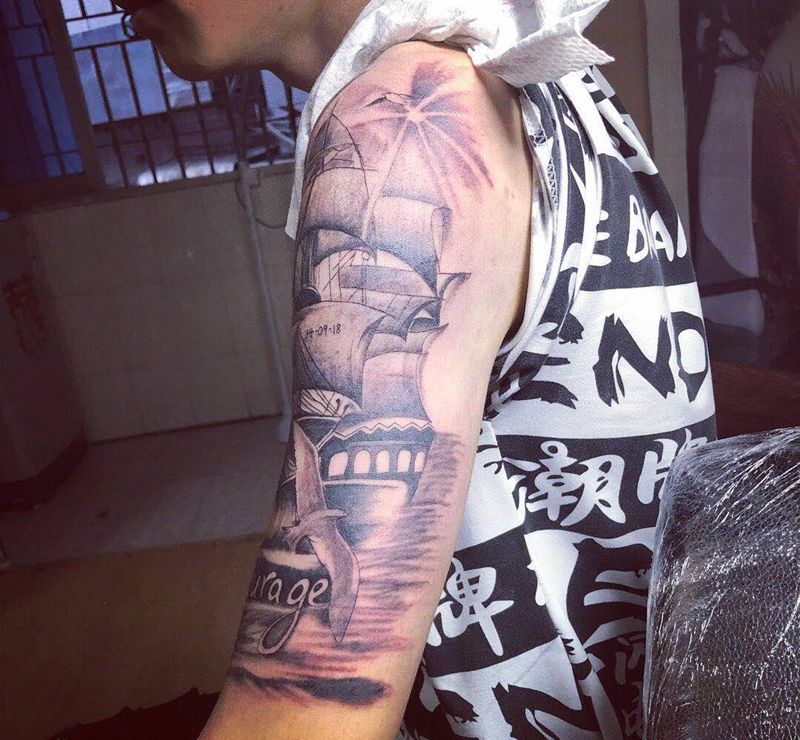 当前位置: 首页 >广西桂林市纹身店-桂林墨客纹身纹身图案>船纹身图片_手臂水墨纹身图案