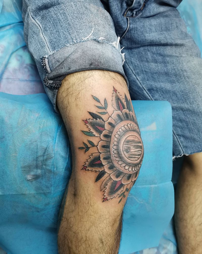 • T网红王老大花腿龙纹身图片_腿部新传统纹身图案