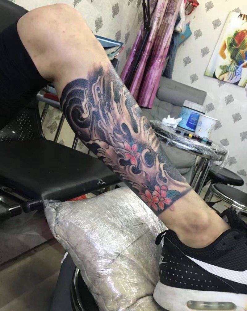 • T网红王老大花腿龙纹身图片_腿部新传统纹身图案