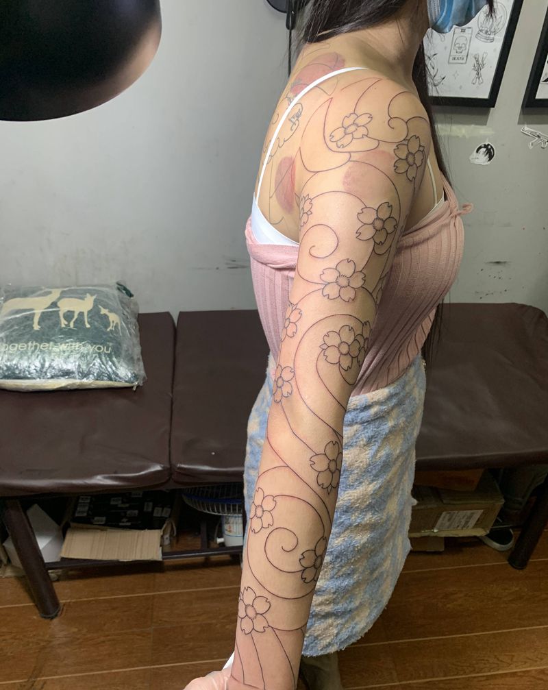 当前位置: 首页 >广西桂林市纹身店-天一刺青纹身图案>老传统樱花臂纹身图片_手臂老传统花纹身图案