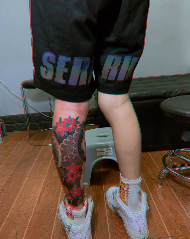 • T网红王老大花腿龙纹身图片_腿部新传统纹身图案