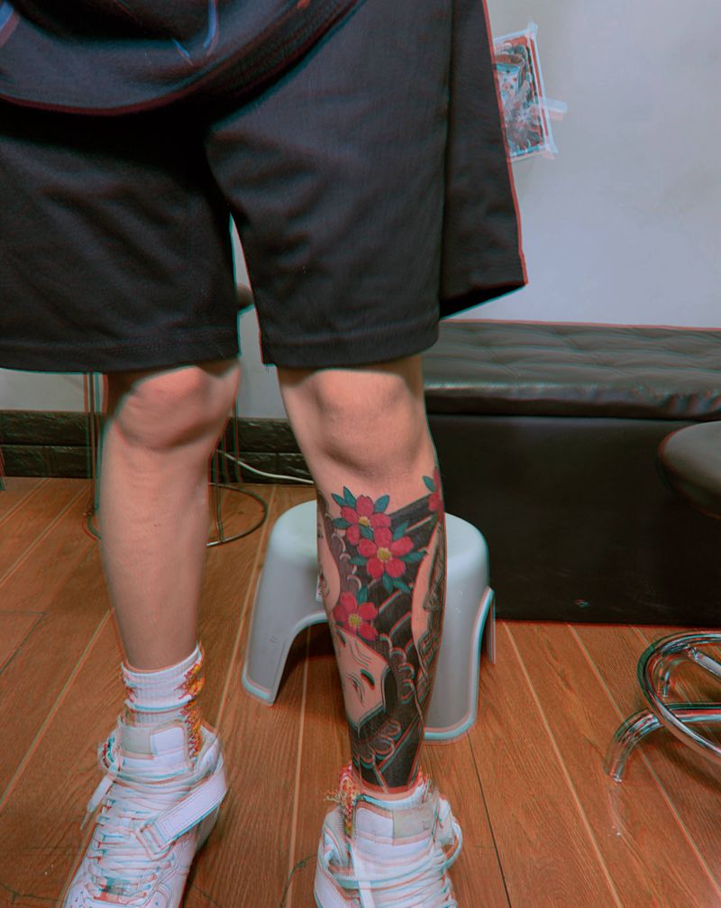 • T网红王老大花腿龙纹身图片_腿部新传统纹身图案