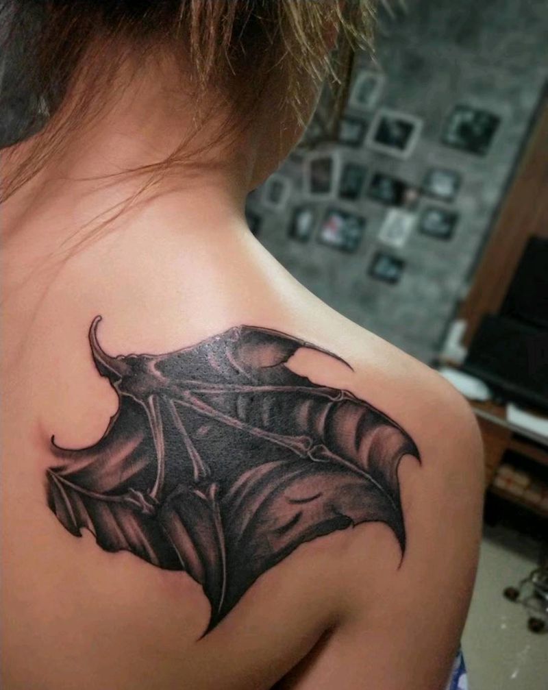 当前位置: 首页 >广西防城港市纹身店-格莱尔刺青纹身图案>翅膀遮盖纹身图片_肩部欧美写实纹身图案