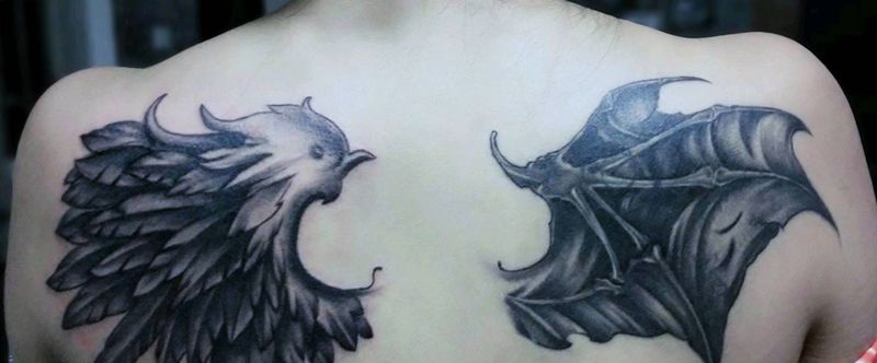 黑灰满背纹身图案