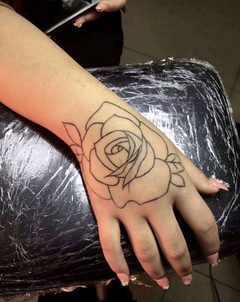 玫瑰花纹身图片_手部欧美写实纹身图案