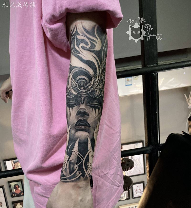 当前位置: 首页 >广西北海市纹身店-刺青猫纹身馆纹身图案>亡灵女巫.纹身图片_手部手臂欧美写实女巫纹身图案