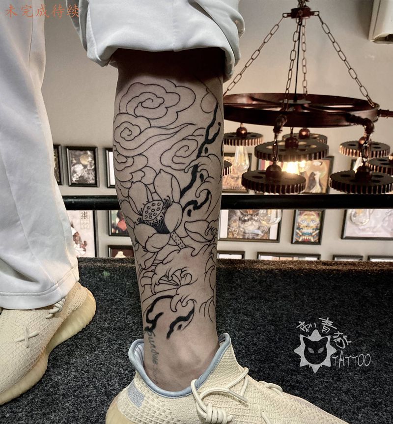 当前位置: 首页 >广西北海市纹身店-刺青猫纹身馆纹身图案>老传统锦鲤莲花纹身图片_脚部腿部老传统锦鲤莲花浪花纹身图案