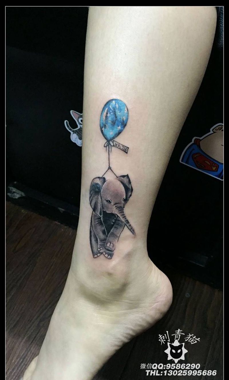 当前位置: 首页 >广西北海市纹身店-刺青猫纹身馆纹身图案>小象纹身图片_成品腿部脚部清新动物纹身图案