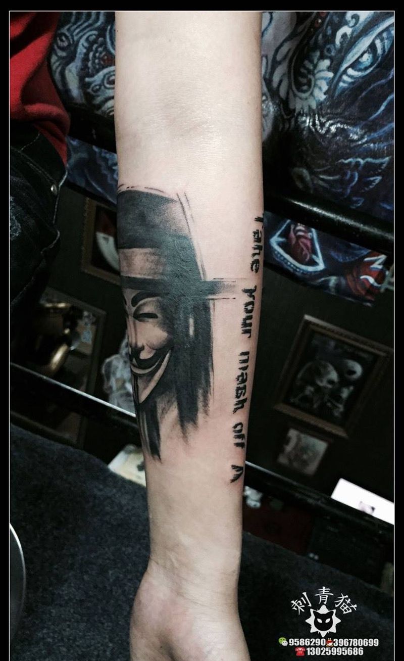 V字仇杀.纹身图片_成品手臂手部欧美写实人物纹身图案