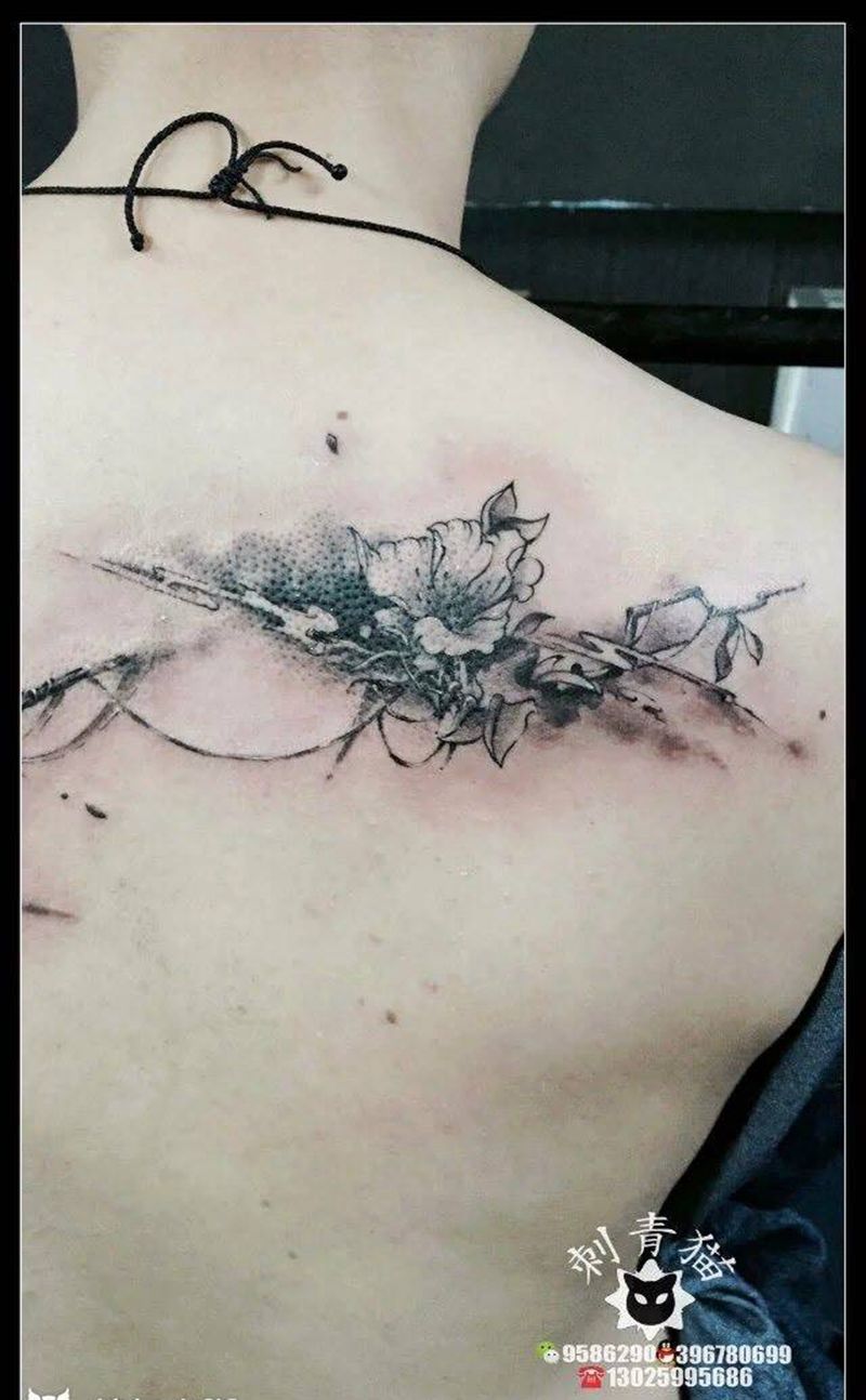 黑灰满背纹身图案