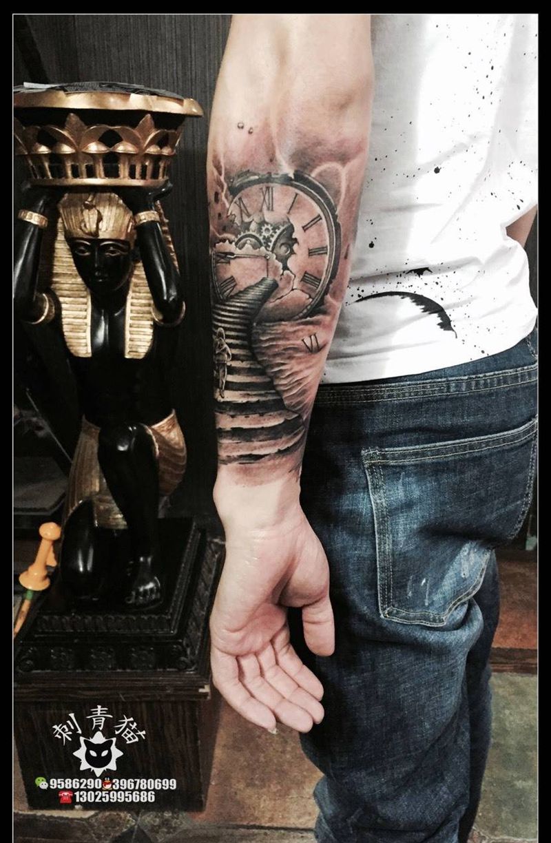 流逝的时间纹身图片_成品手臂手部欧美清新人物静物时间怀表钟表纹身图案