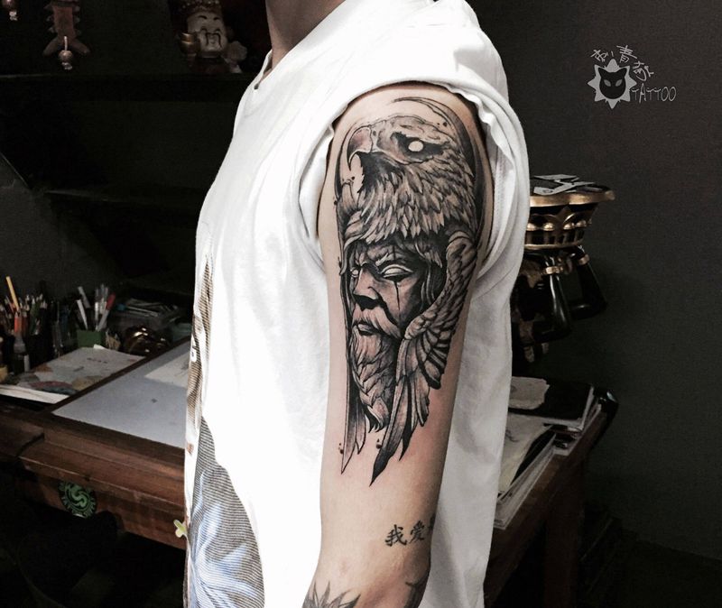 • 纹身吧推荐的披肩图腾半胛纹身图案作品展示