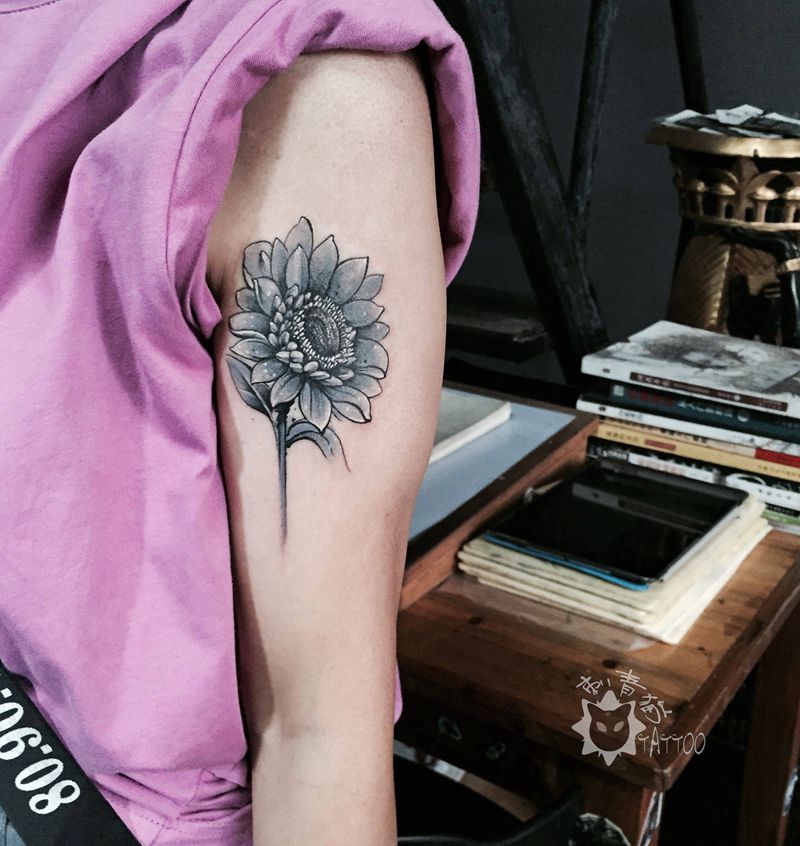 当前位置: 首页 >广西北海市纹身店-刺青猫纹身馆纹身图案>向日葵纹身图片_手部手臂水彩水墨向日葵花草纹身图案