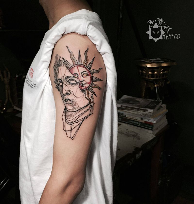 • 纹身吧推荐的披肩图腾半胛纹身图案作品展示