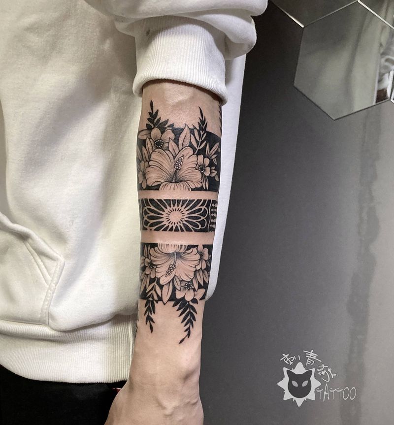当前位置: 首页 >广西北海市纹身店-刺青猫纹身馆纹身图案>臂环纹身图片_手部手臂几何臂环花环花纹身图案